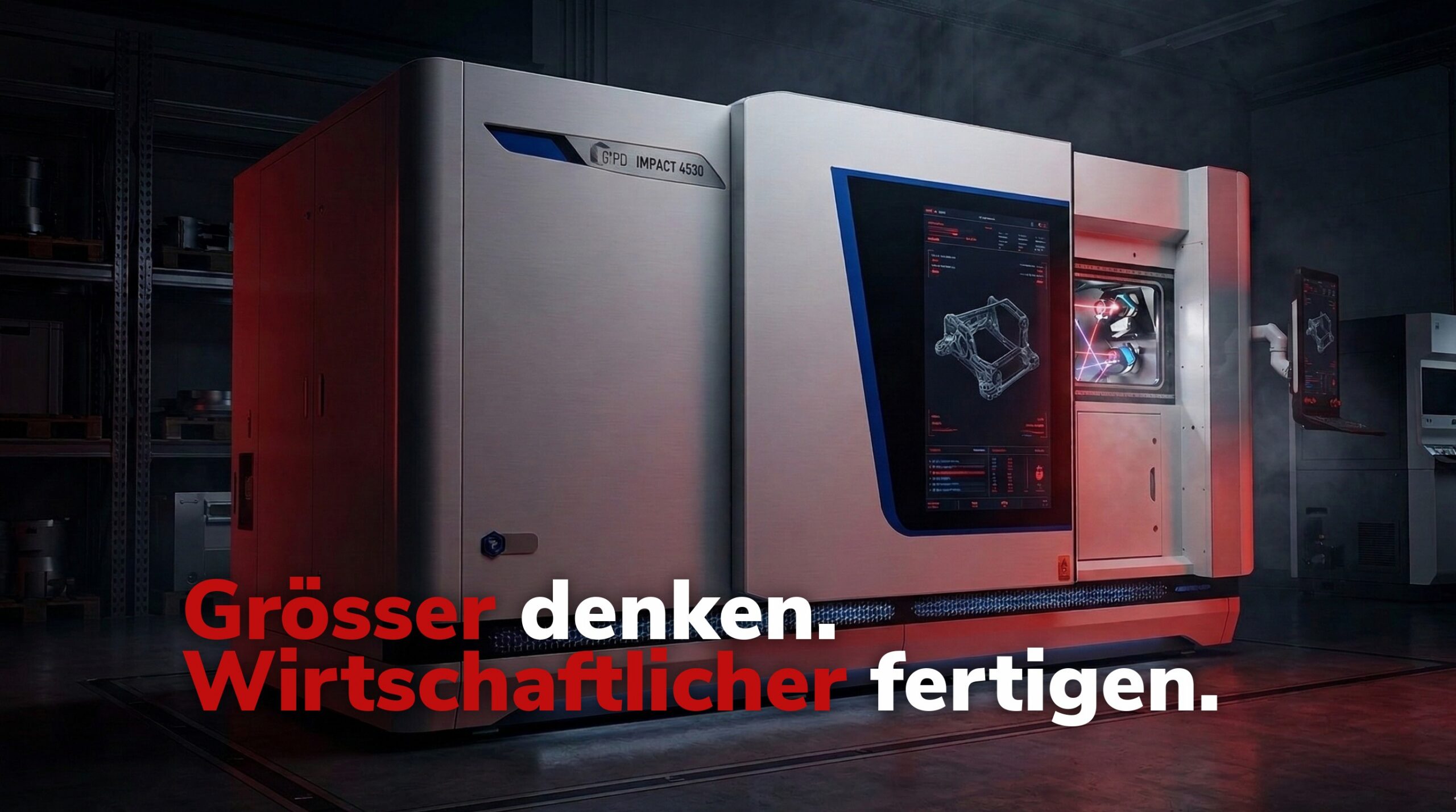 Mit dem neuen 3D-Metalldrucker IMPACT 4530 fertigen wir grössere Bauteile (450x300x400) in kürzester Zeit (4x1000W Laser).